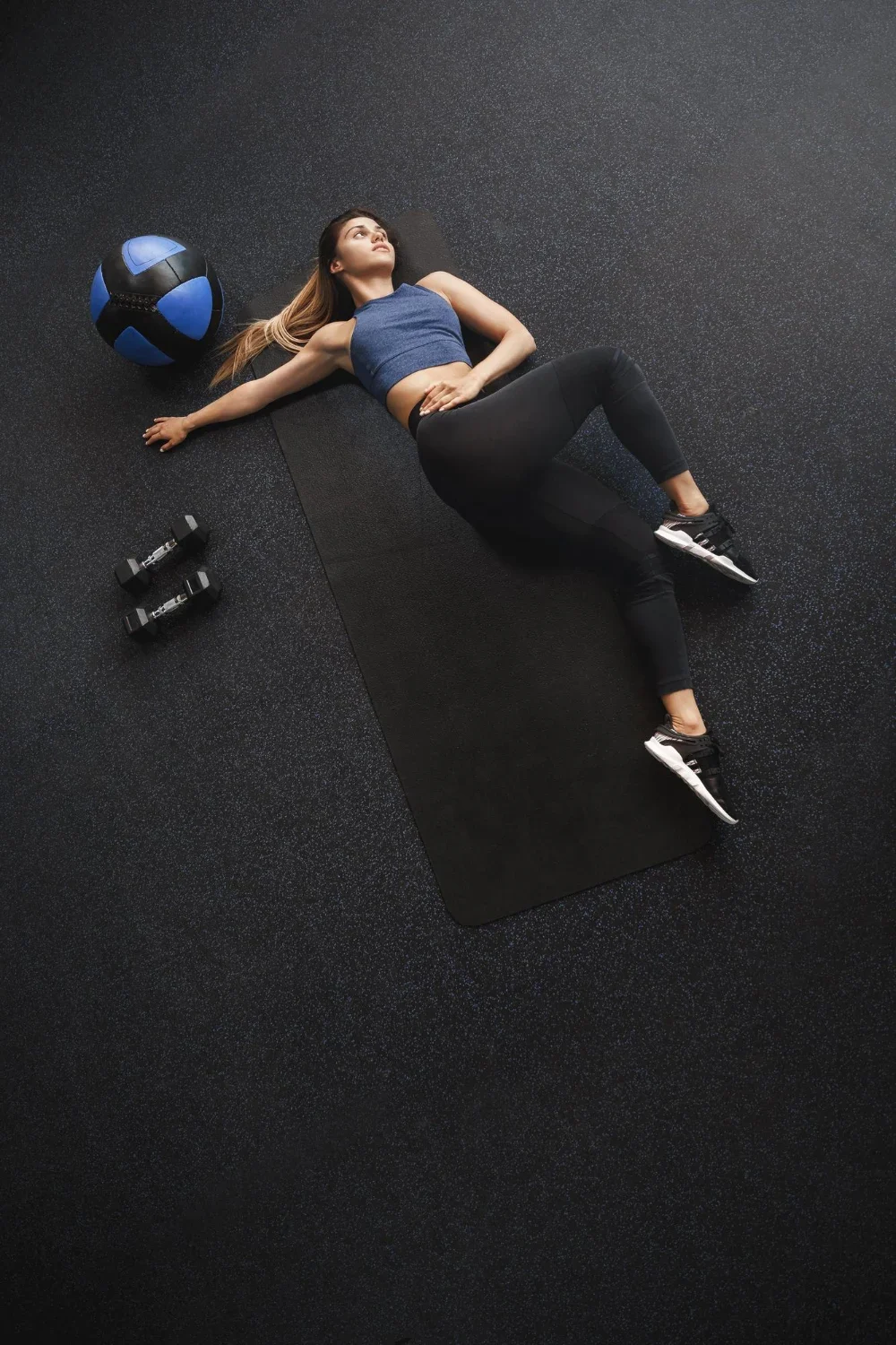 You can design your home gym to feel less “commercial” and more “Hawaiian zen.” Opt for deep gray or coconut brown rubber tiles with subtle flecks that mimic lava rock. Add bamboo accents, tropical plants, and soft lighting to complete the calm, grounded atmosphere perfect for yoga or pilates.